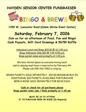 Join us for our quarterly Bingo and Brews fundraiser benefiting the Hayden Senior Center!
